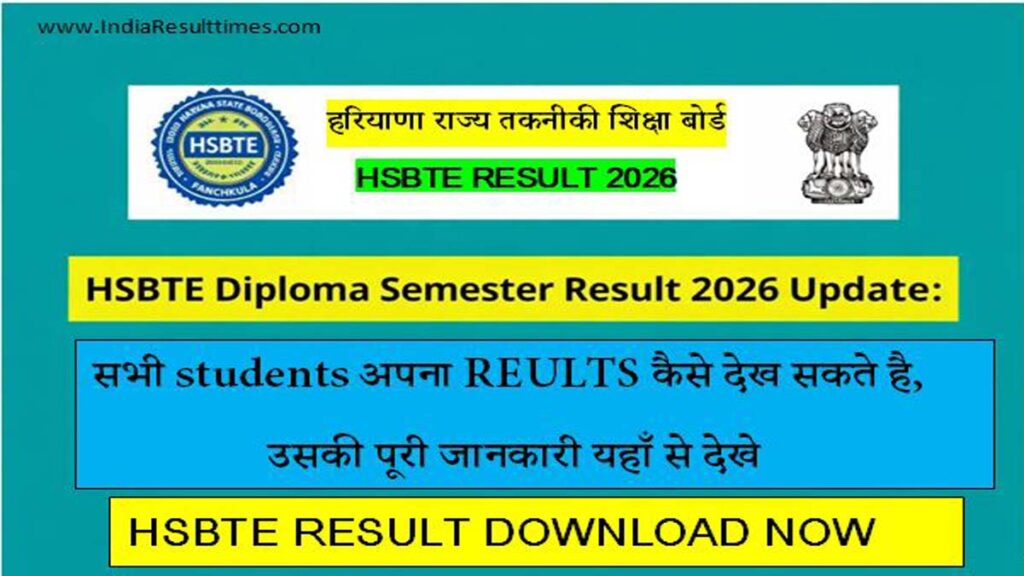 HSBTE Diploma की परीक्षा देने वाले सभी विद्यार्थियों का इंतजार अब खत्म हो चूका है, Haryana State Board of Technical Education (HSBTE) ne Diploma Semester Result 2026, को ऑनलाइन मोड में जारी कर दिया गया है, जो स्टूडेंट engineering, Pharmacy या Managemaent Diploma कोर्स में पढ़ रहे है, वो अपना रिजल्ट और मार्क्स details ऑफिसियल websites पर देख सकते हैं . इस आर्टिकल में में आपको HSBTE Result डाउनलोड करने का पूरी जानकारी Simple step में हमारे indiaresulttimes पे मिलेगी.